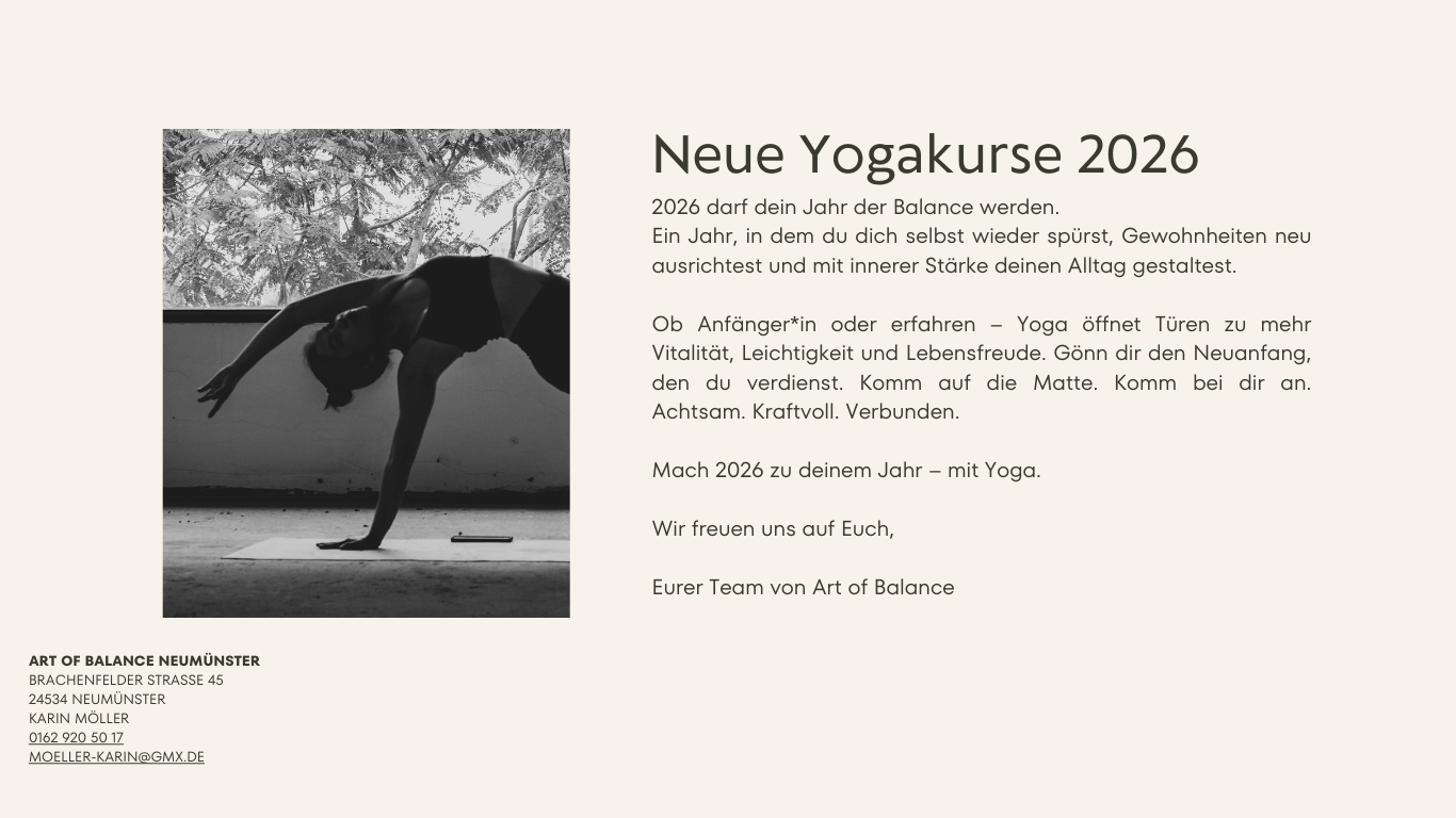 Herzlich Willkommen im Yogastudio Art of Balance.